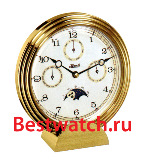 Изысканные настольные кварцевые часы, воплощающие в себе гармонию классического дизайна и современной функциональности. Корпус, выполненный из благородной латуни, придает изделию ощущение прочности и долговечности, а его теплый оттенок создает атмосферу уюта и респектабельности. Защитное стекло, искусно обработанное фаской, подчеркивает элегантность формы и обеспечивает оптимальную видимость циферблата. Помимо точного отображения времени, эти часы оснащены полным календарным функционалом, включающим индикацию числа, месяца, дня недели, а также фазы луны. Это позволяет владельцу всегда быть в курсе текущей даты и времени, а также следить за лунным циклом. Наличие календаря превращает часы не просто в прибор для измерения времени, а в многофункциональный аксессуар, полезный в повседневной жизни. Сочетание латуни, стекла и сложной календарной системы делает эти настольные часы прекрасным дополнением к любому интерьеру, будь то кабинет, гостиная или спальня, и подчеркивает изысканный вкус своего владельца. Они станут не только практичным предметом, но и стильным элементом декора, привлекающим внимание и вызывающим восхищение. Безупречное качество исполнения и внимание к деталям гарантируют долговечность и надежную работу часов на протяжении многих лет.
